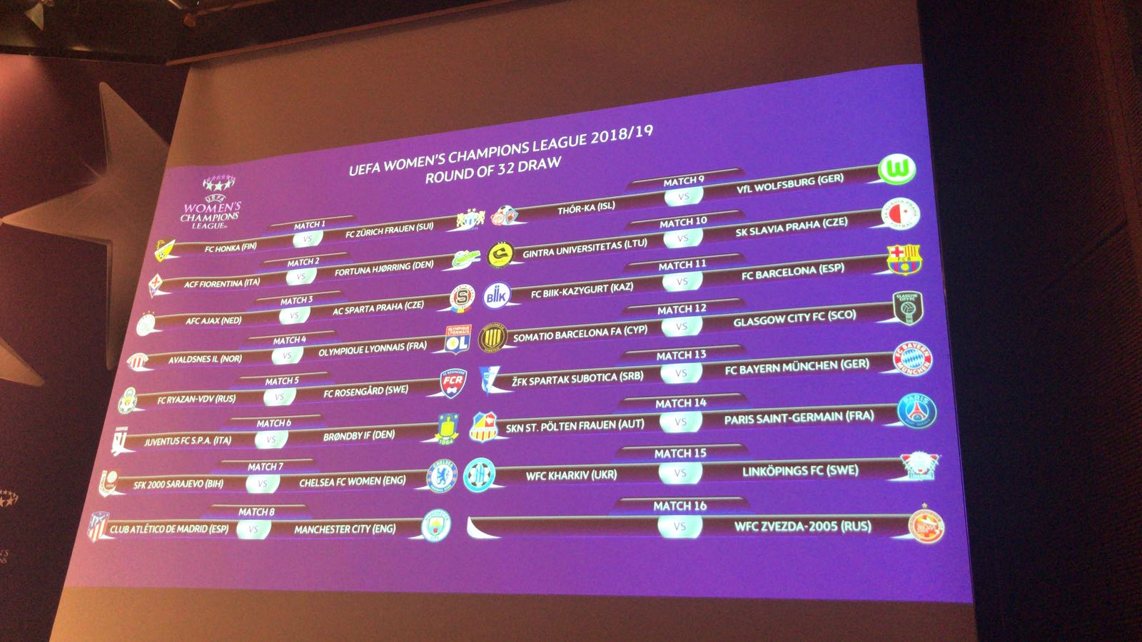 Ligue des Championnes (1/16e de finale - tirage au sort)...Le tirage au sort des 1/16e de finale de la Ligue des Championnes a eu lieu aujourd'hui au siège de l'UEFA à Nyon. Un stade de la compétition... |